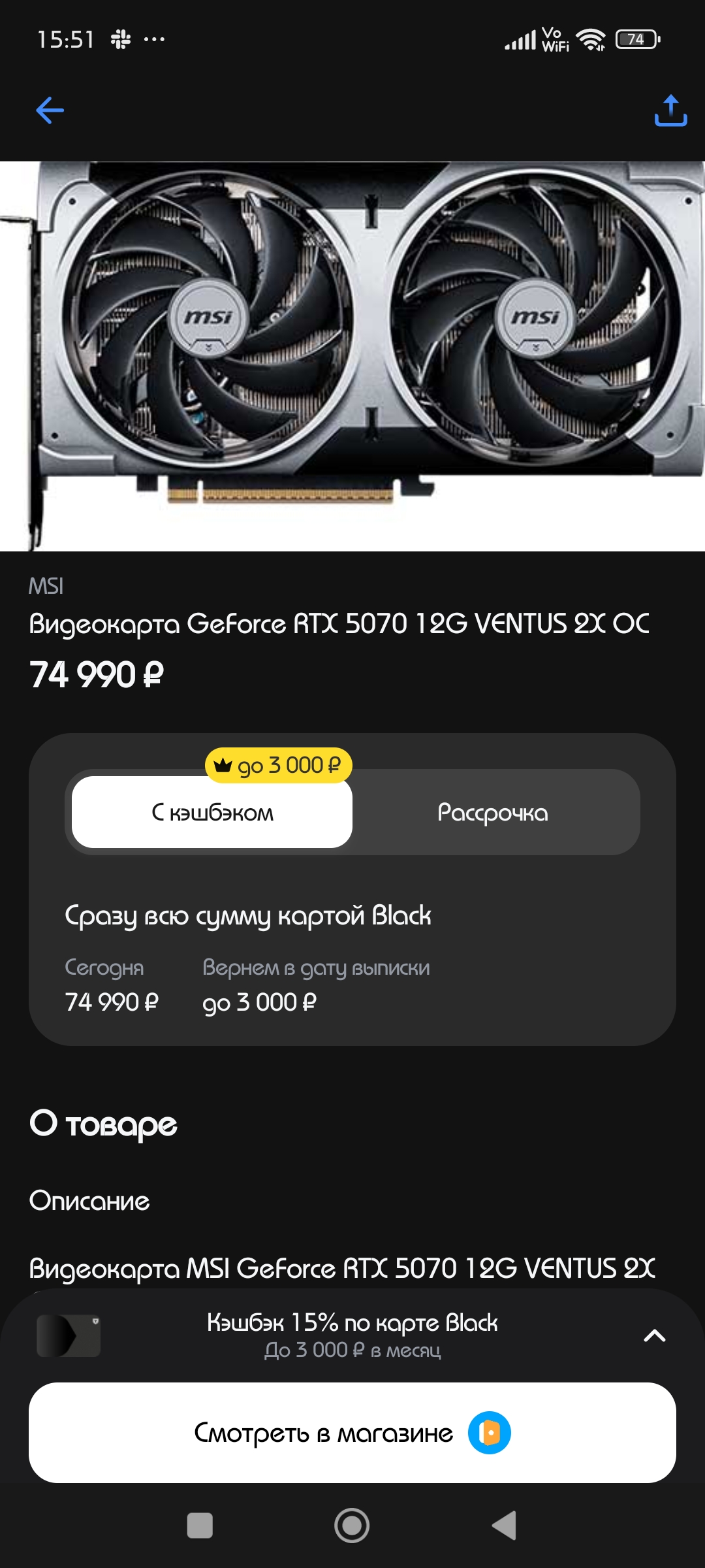 Может кому-то пригодится - схема такая: в шопинге есть 5070 от msi за 75000. Это магазин холодильник.ру, там есть промокод на 4/60, то есть получится 71к без доставки.