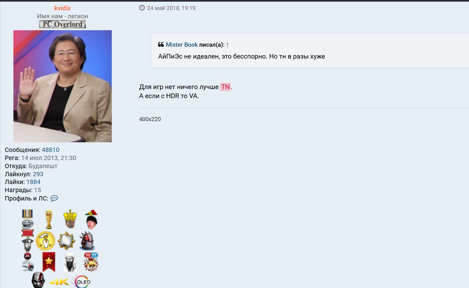 Ты же писал не так давно что ипс параша с нулём преимуществ перед ТН
