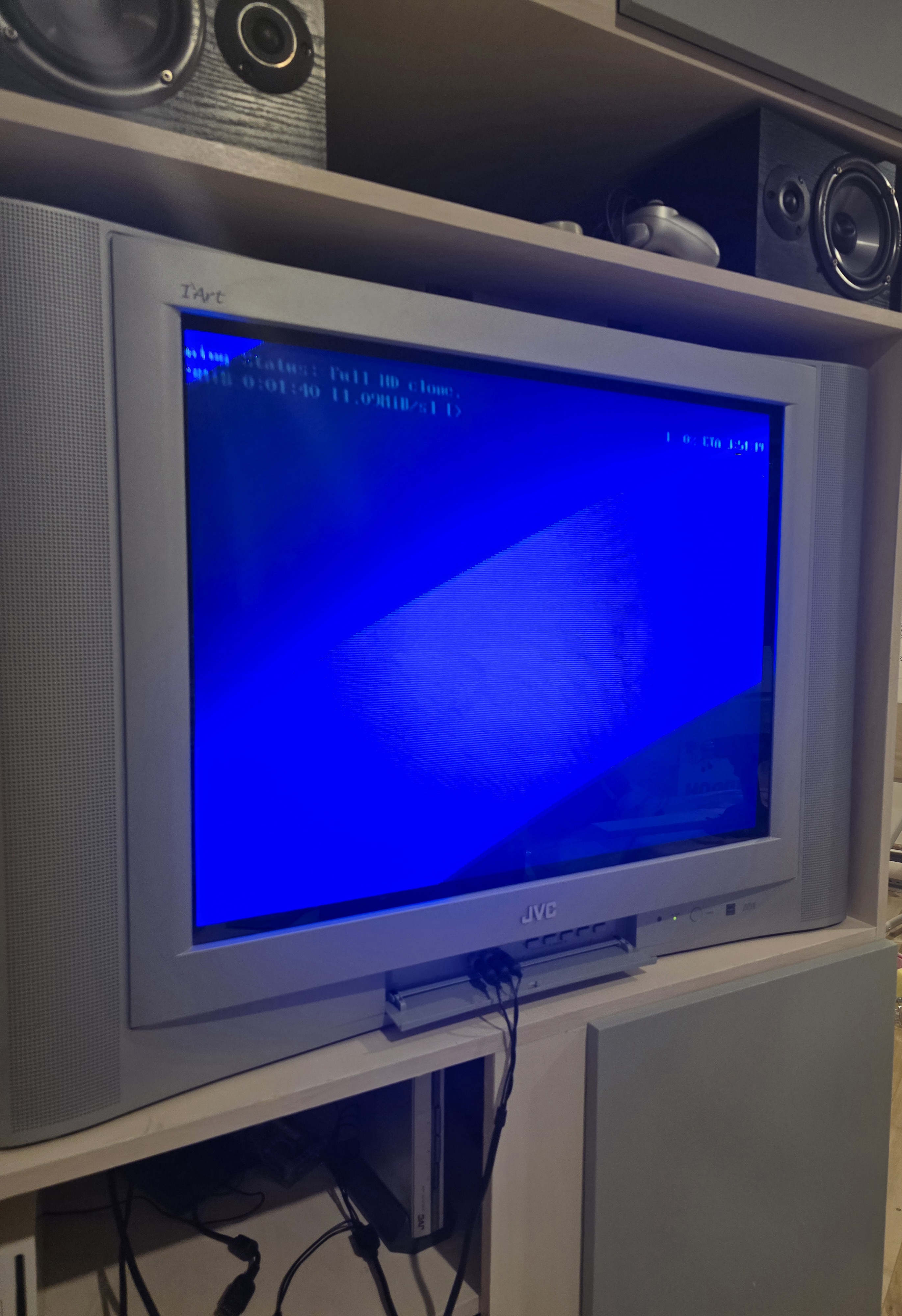Клонирование 8гб диска займёт почти 4ч, консольные скорости.