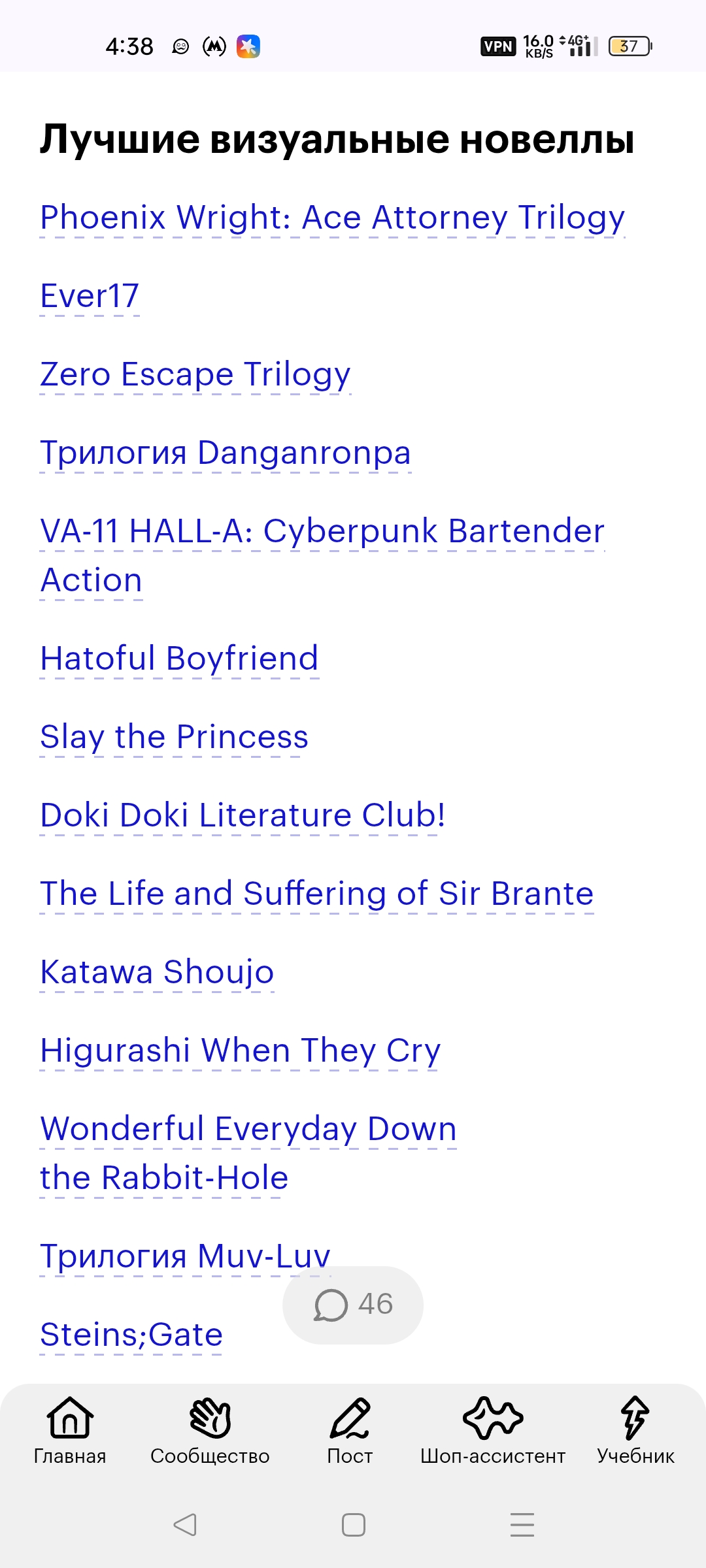 А вообще, оч популярная визуальная новелла - Fate/****. Странно, что ее нет в списке.