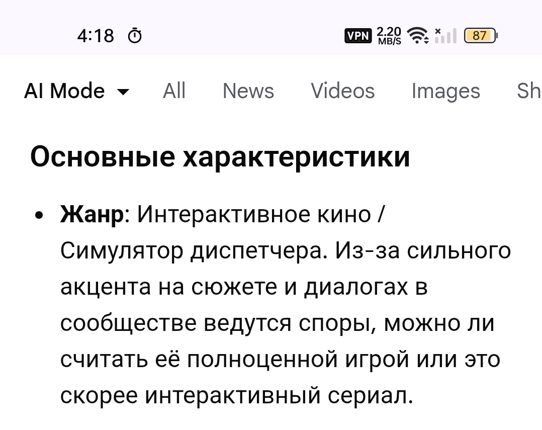 metallsatanist, ответил на немысли Ньюфага. Или что он там доказывал скриншотом? Что гугл назвал диспач игрой?