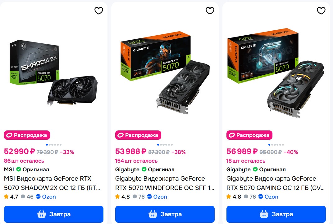 ща кст на озоне скидос на карты, гигабайтовская 5070 57т, а мси 2х вентильная вообще 53