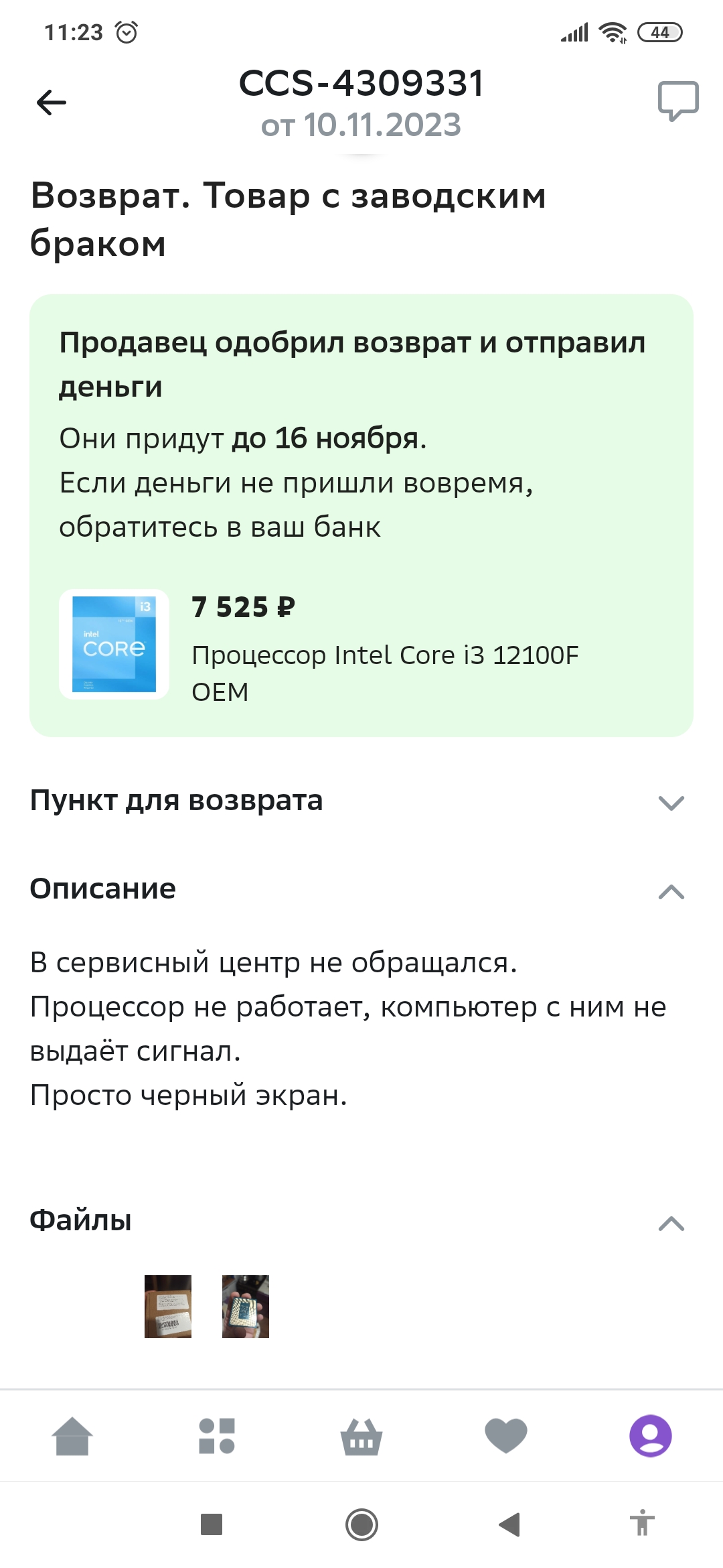 Создал обращение в лк, выбрав то что это заводской брак, приложил фото - деньги вернули. Никаких хитростей.