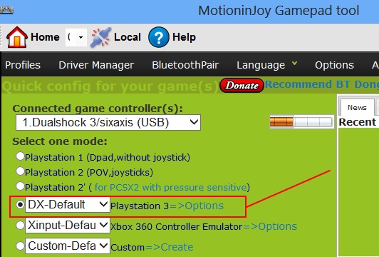 6. Не забудьте указать в профиле, что это PS3 джой (для эмулятора N64б PS1, PS2). Если же для PC игр то лучше выбрать эмуляцию Xbox 360 джоя.