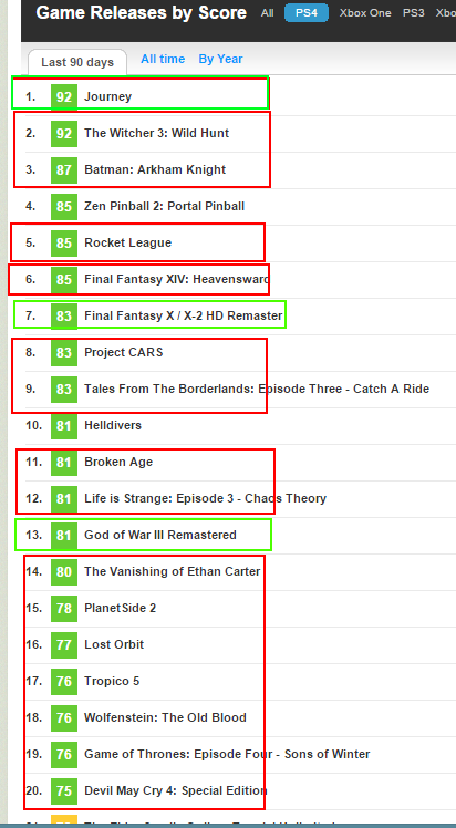 красным мульти, салатовым порты. эксклюзивы говоришь?Darkthone писал(а):95% мультиплатформы - полный шлак ,неважно на чем ,экзы рулят