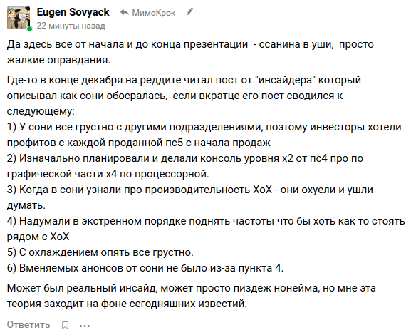 Вообще, если серьезно, то тут челобас на дытыэфе довольно таки обосновано высрался по поводу отставания пс5 от хсех-а