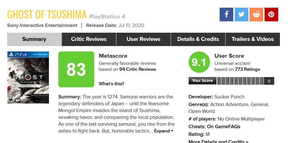 Ghost of Tsushima шедевра не вышло