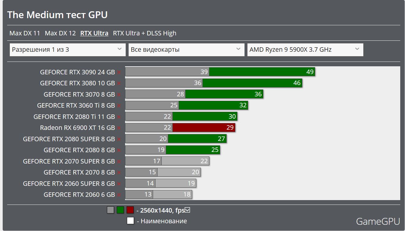 Амуде драйвер под игру еще не обновили. 6900XT в трассировке демонстрирует лучше результат, чем 3070 и 2080Ti.