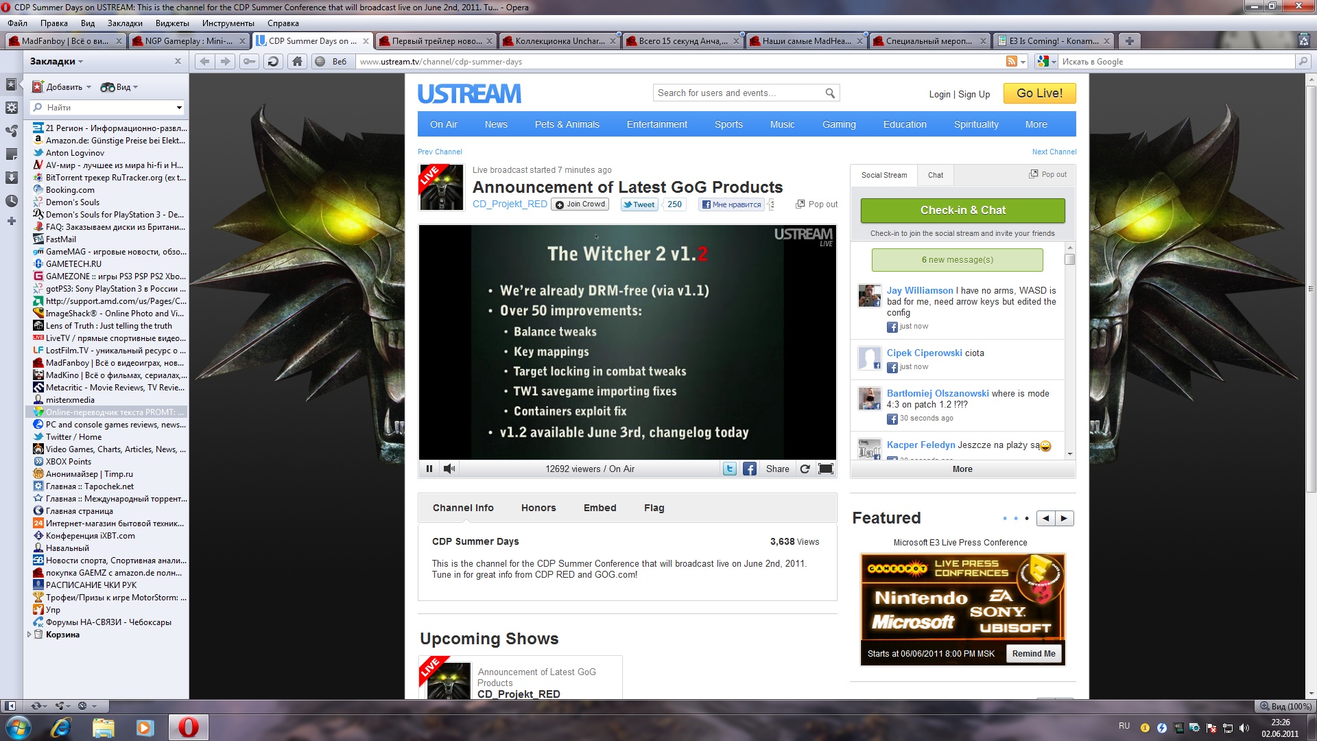 Кстати щас идет стрим с пресс конференции СД Проджект http://www.ustream.tv/channel/cdp-summer-days, только что анонсировали патч 1.2 для Ведьмака 2. (если че это не шутка, смотрите сами)!