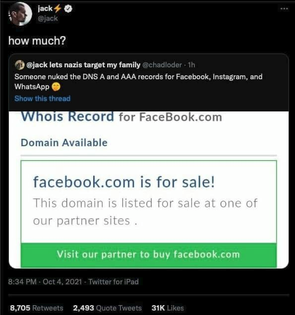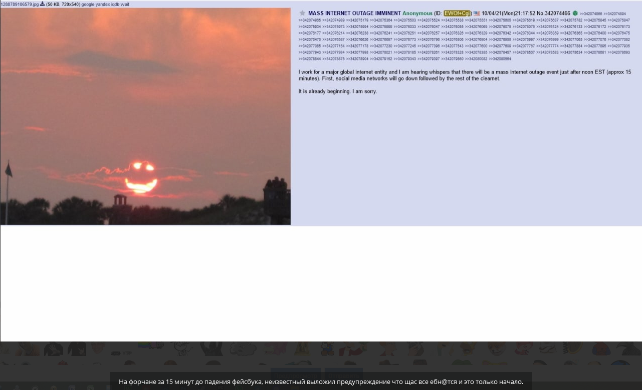Журналисты Брайан Кребс из The Independent и Райан Мак из The New York Times сообщают, что не работают и внутренние инструменты компании. Автор Telegram-канала «Эшер II» Филипп Кулин написал, что «лежит весь Facebook», включая корпоративную сеть, DNS и все сервисы.