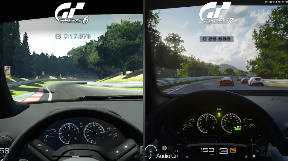 Сравнение графики Gran Turismo 7 для PlayStation 5 с Gran Turismo 6 для PlayStation 3