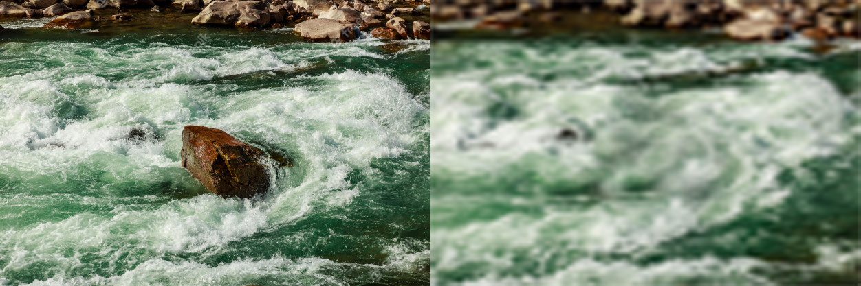 Берём картинку с камнем в реке, т.к. она рандомная, то и размеры соответствующие (626 x 417). Уменьшим её согласно пропорции и посмотрим что выйдет (для наглядности готовое изображение будет отмасштабировано до оригинала и поставлено рядом). Как будто бы и не было никакого камня.