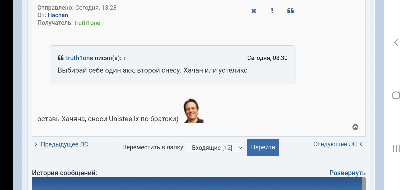 tohdom, Последние дней 10 ты в спячку уходил? Я все эти дни регулярно ловил от него агро на ровном месте и токсичность, старался не реагировать и продолжаю стараться, иногда по лайту теряя терпение. При этом я его забанить не могу, а он меня может. Вот и думай, тому ли человеку ты написал и тому ли человеку кидаешь фейспалмы. Ты ж только теряешь чувство справедливости. Или ты его нарочно готов потерять ради определенных преференций тут на сайте?