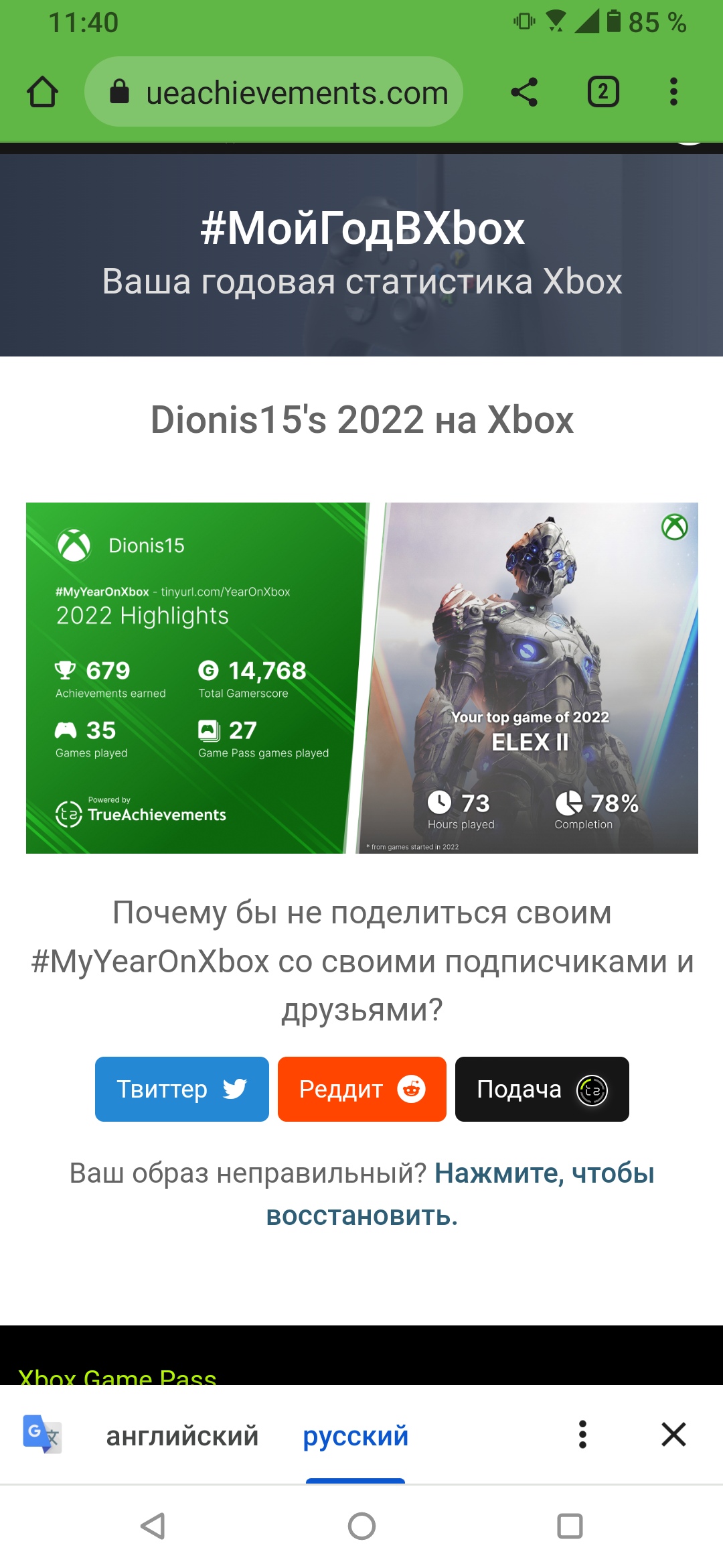 официальном сайте TrueAchievements можно поглядеть на свои игровые итоги за 2022 год на Xbox.