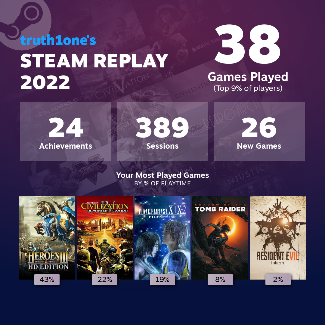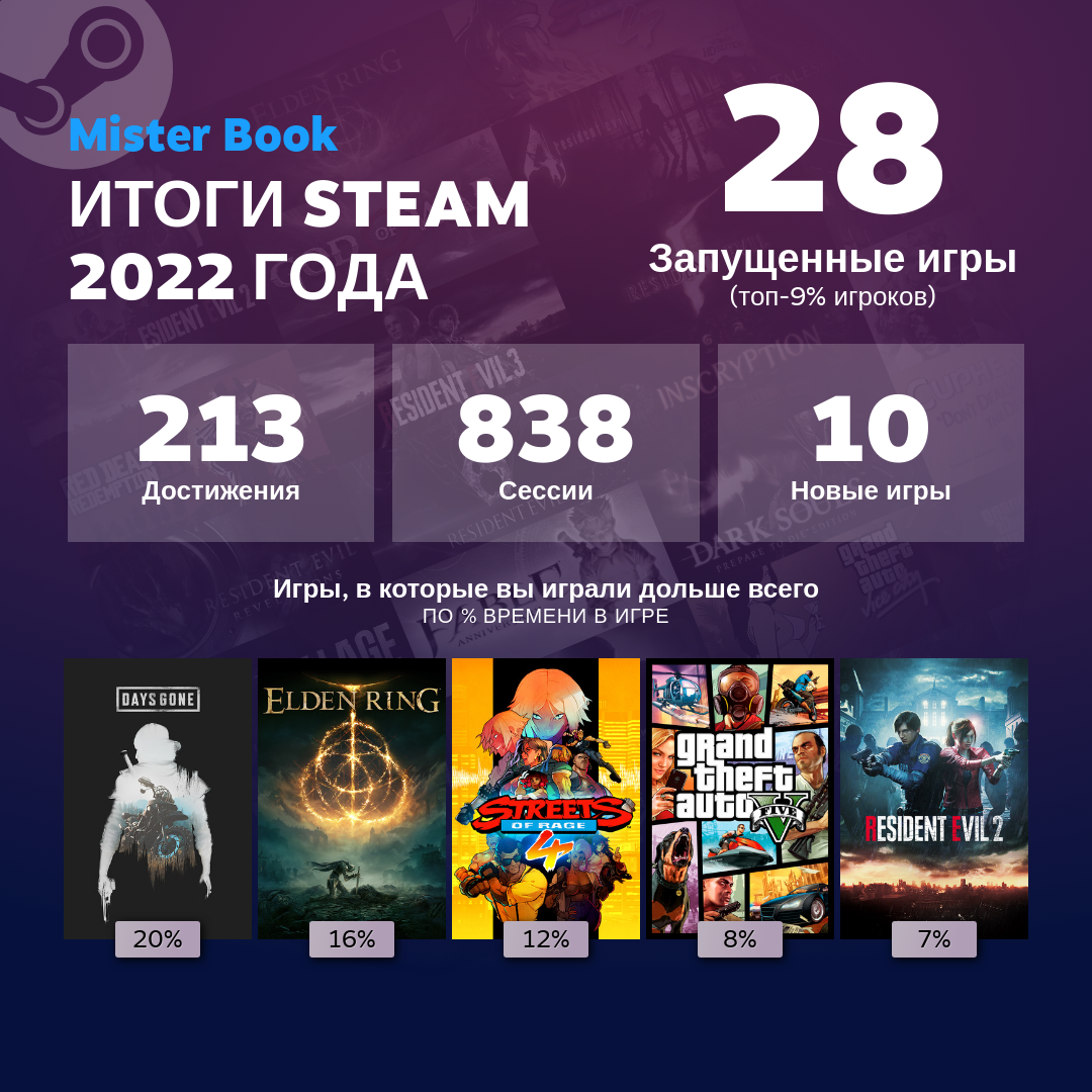 Целых 11 запущенных игр, в Реквием считай не играл судя по достижениям, зря такую стату только выложил.