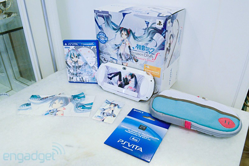 Сегодня в сети появились фото лимитированного бандла Виты с Микушей (^_^). В комплекте будет: белая консолька, шикарнейший винил, игра, карта памяти на 4gb, кинцо, AR-карты с Микушой. Выход игры - 30 августа в Японии. Фотки: