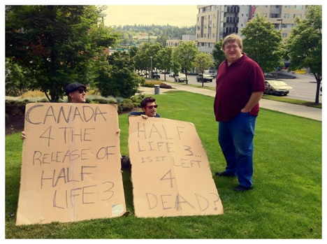 Напротив офиса Valve два ярых фаната игры устроили забастовку по поводу того, что Valve не выпускает Half-Life 3.