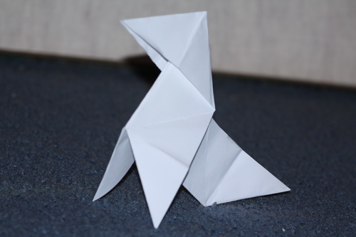 Инструкция на видео, кстати, дает больше сгибов, нежели та, что на картинке вверху. А вообще, нужно научиться складывать птичку без первой части, когда все складываешь и потом разворачиваешь. Сразу надо, минуя первую часть, складывать птичку враз.