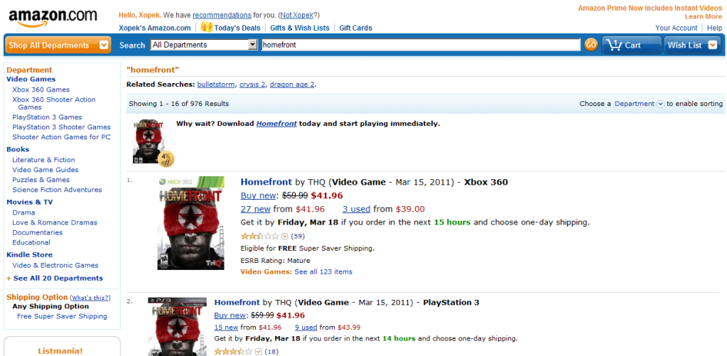 Игра HomeFront от THQ и Kaos вышла вчера по обычной цене по которой продаются практически все новинки в 60$.