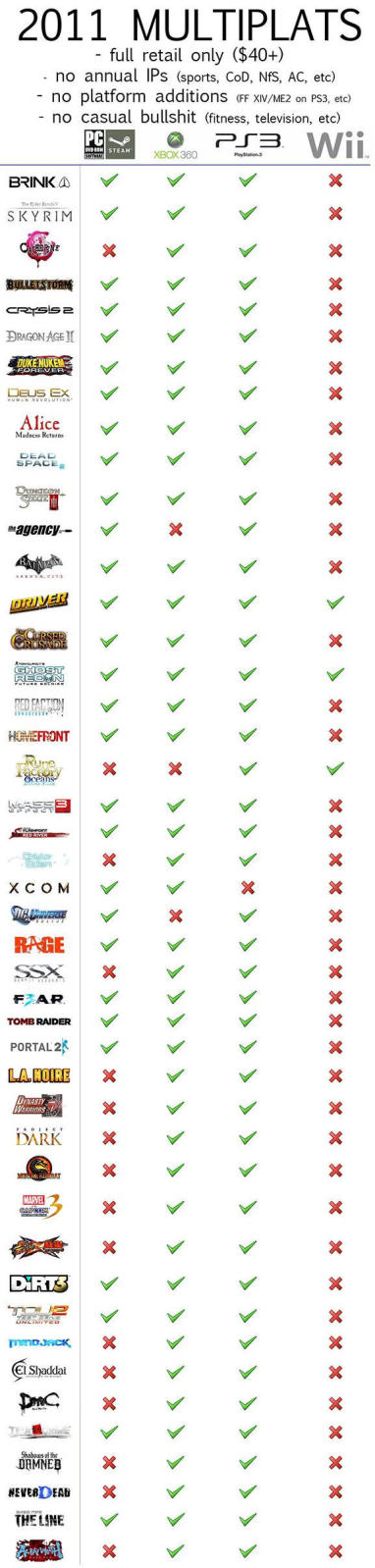 Вот список мультиплатформы за 2011 год (некоторые игры пересены, но их кол-во ничтожно мало, поэтому можно не учитывать):