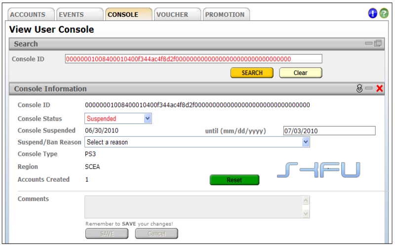 То что Sony решила баннить прошитые консоли привело к веселым последствиям, в блоге команды SKFU, которые занимаются разработкой и исследованием Homebrew для PS3, появился способ как можно разбаннить свою консоль, но что еще интереснее, команда нашла способ забаннить любую легальную PS3.