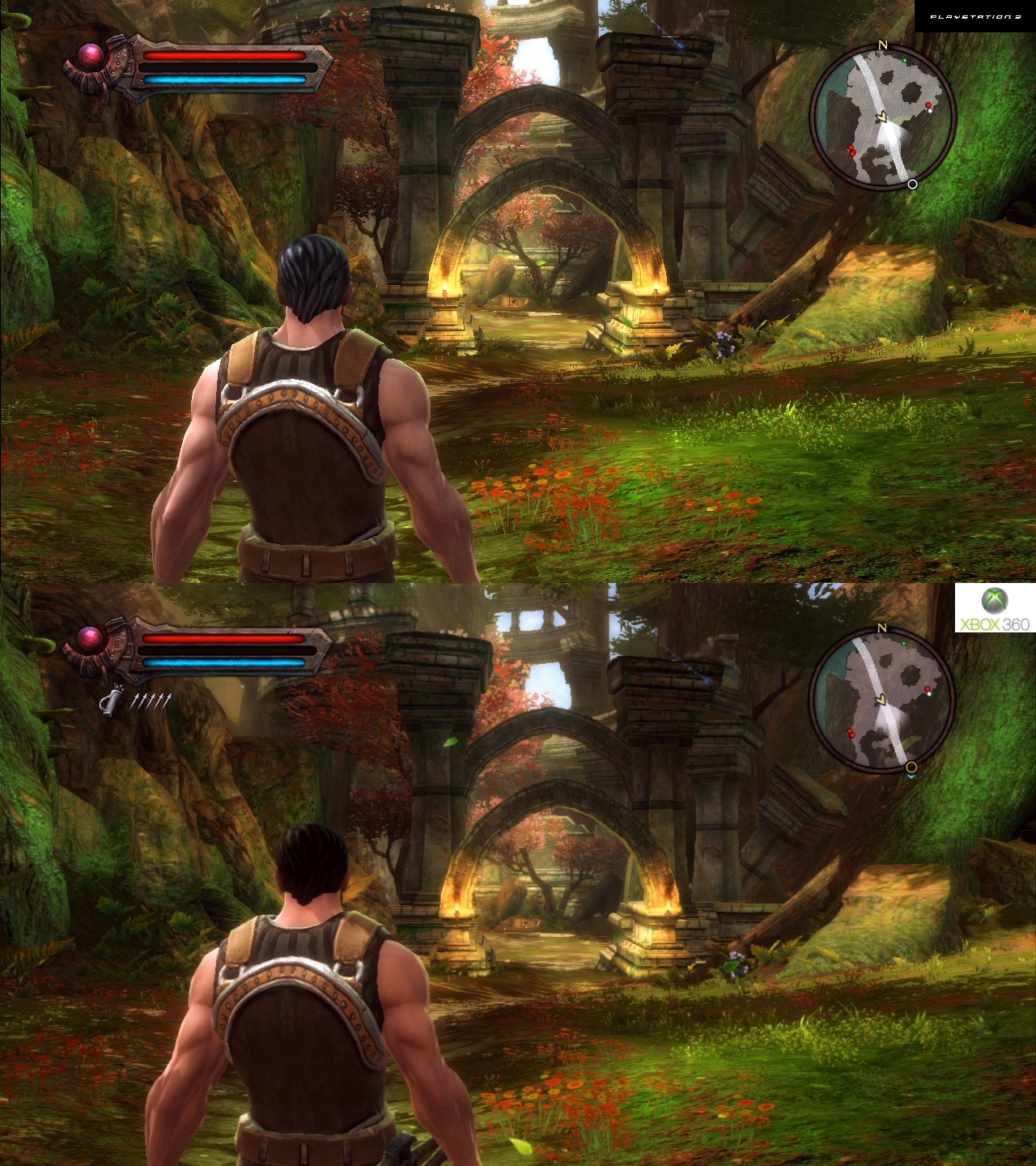 Можно конечно же придраться к тому, что под аркой явно видно, что в Xbox360 версии четкости гораздо меньше: