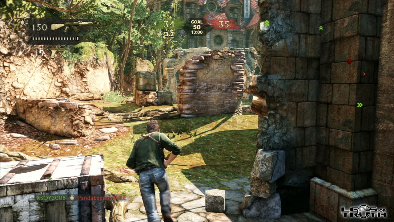 Первым делом бросается в глаза камень внизу. От него не отпадает тень, что и вправду выглядит убого... Но опять же, это игра, а игра это динамика. Те кто играли, может знают, что на этом месте часто происходят крупные баталии, т.к. впереди много открытого пространства. И какой, извините, далбоеб будет рассматривать камешек когда впереди на него летит "рой" пуль. Вы спросите, тогда почему Naughty Dog просто не убрали этот чертов камень? А потому, что он хоть и чуть чуть, но добовляет определенной атмосферы разрушенной крепости. Вы его увидите лижь боковым зрением, и не заметите отсутсвие этой гребанной тени. Но давайте посмотрим на главного козыря со стороны ПК-геймеров ака Crysis.