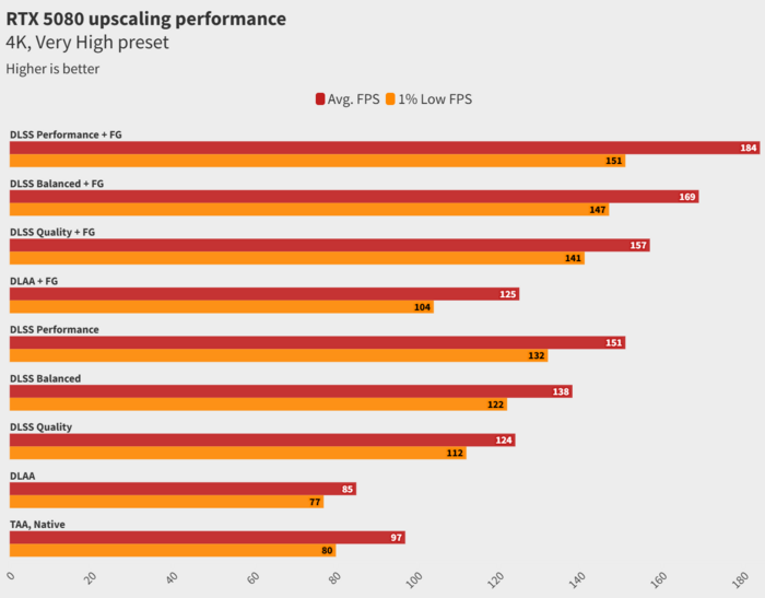 Сама игра хорошо оптимизирована - RTX 5080 выдаёт почти 100 фпс без DLSS:
