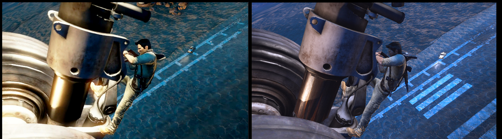 Если после всего написанного, вы все еще сомневаетесь в графике анчартеда, то это объясняется пре-альфа версией игры. Однако, тут хейтеры возразят: "Ничего с альфы не изменится, добавят пару эффектов, допилять багнутость и сделают стабильный фпс и всего". но и тут они не правы. Для примера привожу скриншот из недоделанной версии анчартед 3 против ретейл версии: