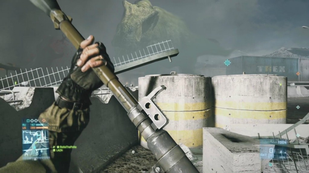 В интернетах появилась пикча, на которой можно заметить огромного Ти-рекса, убивающего все подряд, в частности злых сонибоев и ненужных пекабродов. Даже неожиданно, что ящеры так выросли в размерах, небось от ногеймса совсем озверели, так их и вписали в мультиплеер третьего Батлфилда, чтобы скучно не было