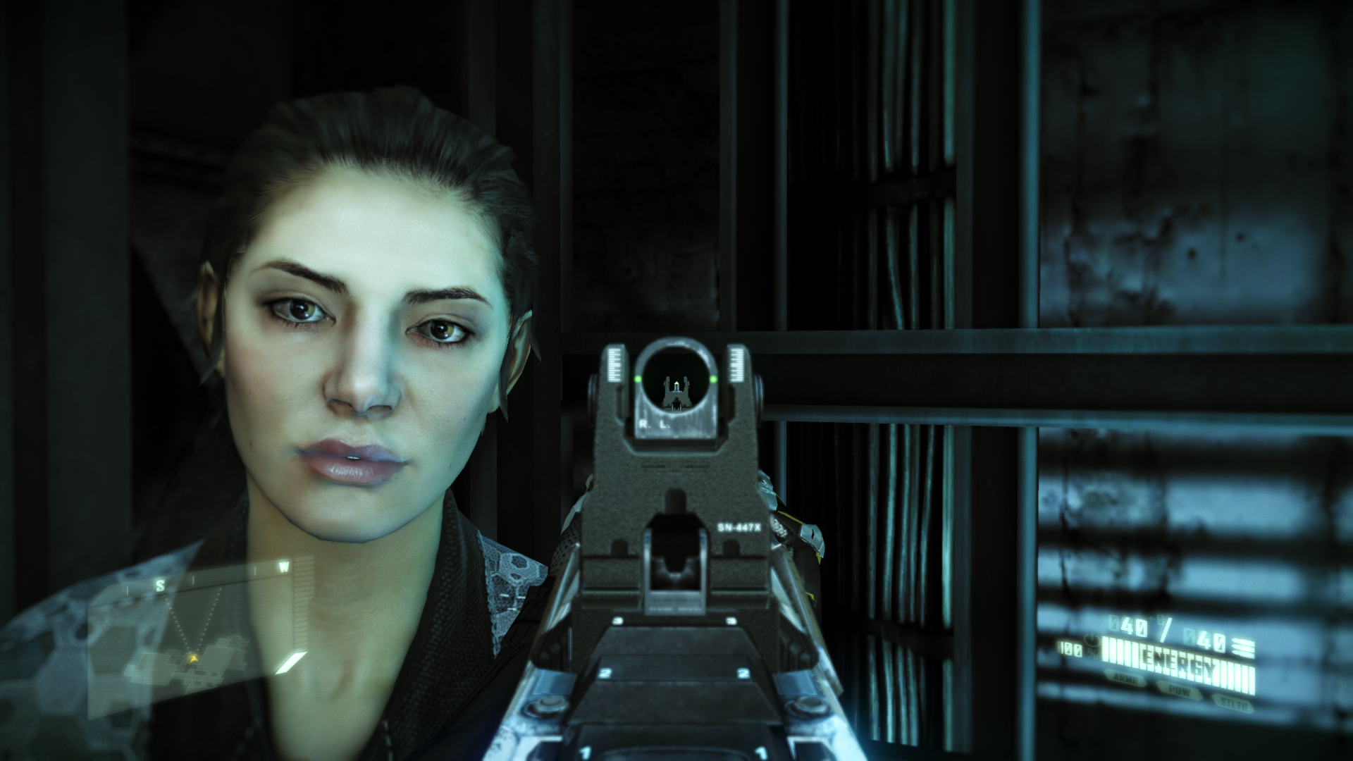 Покончив с графодрочеством, рассмотрим модельки и анимацию. Они тут к сожалению на средненьком уровне. Люди двигаются не очень естественно, иногда застревают в объектах. Лица симпатичные, но гейм-индустрия уже видела примеры получше. Хотя девушка мне приглянулась, так что провел с ней даже фотосессию (на синеву не обращайте внимание, такой уж свет в лифте был):