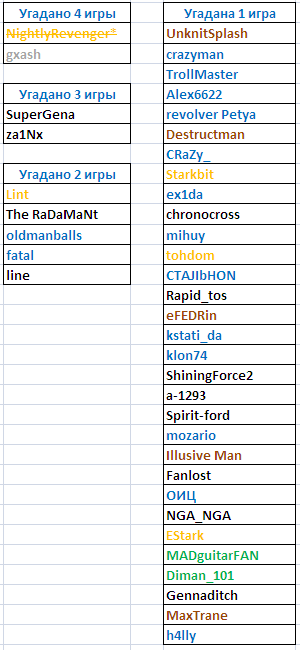 NightlyRevenger* к сожалению запостил прогноз 7-го февраля, когда некоторые игры уже вышли. Подглядел ли он оценки к паре игр или нет науке не известно. Но 1 место увы присудить я никак не могу.