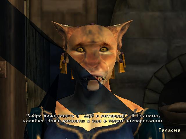 Так же, в Обливионе, как и в большинсте рпг, есть душа. Причём она отражается не только в красивых пейзажах, но даже в любом встречном НПС. Так, если вы посмотрите на лицо и глаза барменши, то сможите прочувстовать всю сложность её жизни, переживания, эмоции. Я вам это попытаюсь продемонстрировать: