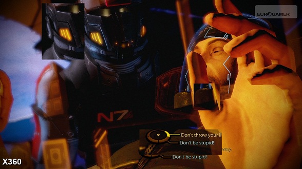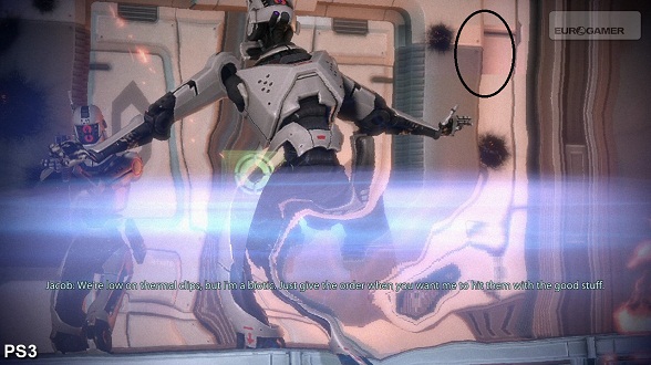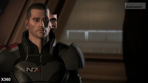 Опять дизайнеры что то прятали, но смена источника освещения прошла бы нещаметно, будь это самое освещение мягче и точнее, но это не про PS3 версию, удар пришелся по глазу Шепарда - он ужасен.