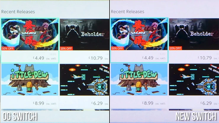 Согласно тестам, обладатели новой модели Switch могут расчитывать на дополнительные 2-3 кадра в секунду производительности в некоторых играх (например Mortal Kombat 11 и Zelda: Breath of the Wild). Это заслуга более быстрой общей памяти.