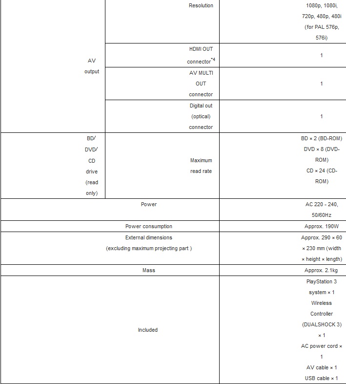 Новая консоль стала на 20-25% тоньше, чем PS3 Slim и почти на 50% легче и меньше по габаритам, чем первая ревизия PS3 Fat c 60 Gb HDD. На территории Японии консоль будет поставляться эксклюзивно в белом корпусе, для всех остальных регионов мира консоль будет только в черном варианте.