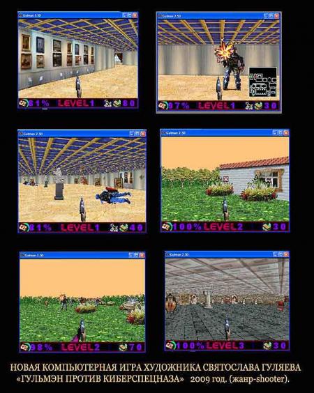 Вы не знаете про "Гульмен 2: Гульмен против киберспецназа"? Это качественный и, что самое главное, наш родной, отечественный 3D-шутер от первого лица с поразительной графикой, захватывающим геймплеем и невероятным сроком разработки - игра начала разрабатываться аж 5.10.09 и стала доступна 20.10.09. Проект распространяется модным нынче способом - через цифровую дистрибуцию на официальном сайте. Для тех кто пропустил первую часть игры - смотрите здесь.