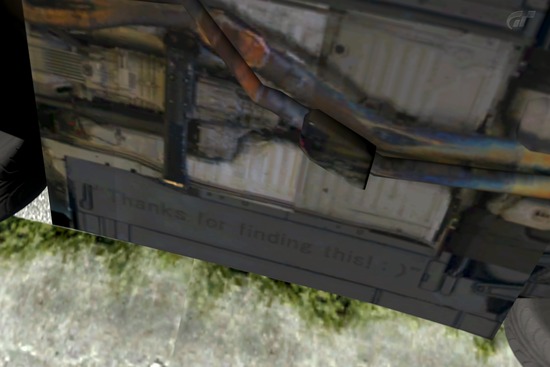 Недавно в прессе появилась информация, что в Gran Turismo 5 модели машин были сделаны со сканов моделек машин сделанные контрой AUTOart. И во время создания моделей разработчики забыли убрать логотип AUTOart из игры.