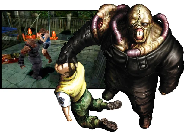 Стычки с уже ставшим иконой Немезисом происходили на протяжении всей игры. Даже тогда, когда вы уже, кажется, оставили его позади, он всё равно выскакивает снова в самое неподходящее время в самом неподходящем месте, чтобы ещё раз попытаться съесть ваш мозг (прим: щито? Немезис ест мозги? Oh wow). Capcom решила воспользоваться возможностью этих случайных встреч, дабы привнести что-то новое в геймплей. Вы никогда не войдёте в комнату и увидите сидящего без дела Немезиса, который ждёт возможности сразиться с вами снова – вместо этого, у вас практически всегда есть выбор, как среагировать на его появление.