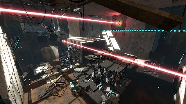 Визуальная часть игры не поражает воображение, но в то же время она приятна глазу и не вызывает каких-либо неприятных ощущений. Самое главное, не смотря на то, что движок давно устарел, картинка не имеет явных недостатков, которые бы бросались в глаза, а это очень радует. В плане музыка в игре всё шикарно, вся музыка выдержана в стиле 8 битных игр, что ещё сильнее улучшает атмосферу игры. Обязательно приобрету OST игры для своей библиотеки игровой музыки. И обрадаю фанатов песен в исполнении Гладос, в конце игры она снова поёт, песня новая, но она так же завораживает своим чарующим компьютерным голосом. Так же порадовала русская озвучка игры, она качетвенная и отлично проработанная, голоса все подходят своим обладателям, что не удивительно, со времён Half-Life 2 Valve очень тщательно относится к локализации проектов на разных языках. К сожалению, без косяков не обошлось, турели умудряются разговаривать сразу на двух языках, английском русском, первый вариант более мягкий по голосу, наш вариант более механиеский.