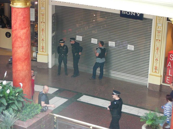 Sony видимо испугалась анонимусов и позакрывала многие магазины в этот день, выставив полицейских и охрану у закрытых ворот магазинов.