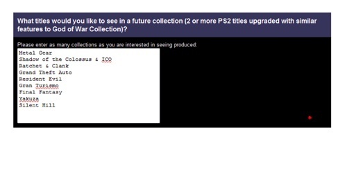 Как вы можете убедится из предоставленного скриншота, хрустальный шар редакции MadFanboy был весьма точен. Именно этот список Сони приложила к своему опросу. Лично я, железно бы прикупил 6 сборников из данного списка, ибо современный, шутерный отстой не ровня данным шедеврам.