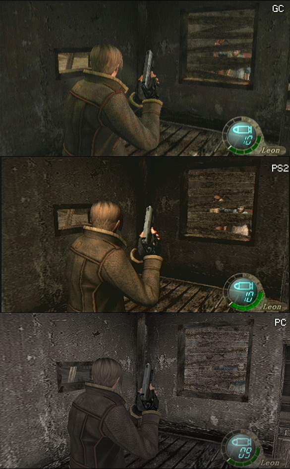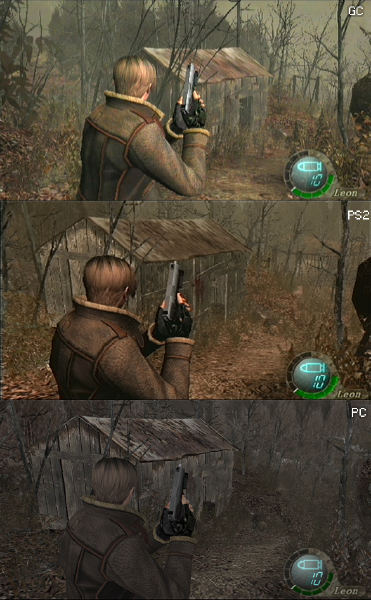 Гляньте как пострадало освещение и цветовая палитра RE4 при портировании на PC (низкая чёткость консольных скришотов обусловлена ТВ-тюнером):