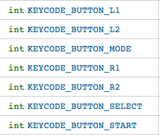 Если вы интересуетесь программированием под Android, то в классе android.view.KeyEvent вы найдете такие клавиши как: A, B, C, L1, L2, Mode, R1, R2, Select, Start, ThumbL, ThumbR, X, Y, Z.