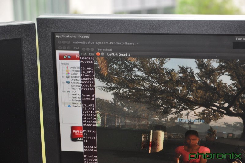 Сайт Phoronix начал сообщать о том, что компания Valve работает над версией Steam для Linux еще в 2010 году, однако тогда эта новость мало кому показалась правдивой. Но сейчас в сети появились первые фотографии, на которых видна игра Left 4 Dead 2, которая запущена в "нативном" виде в среде Linux (т.е. не через Wine или какие-либо иные эмуляторы Windows). Фотографии были предоставлены Майклом Ларабелом (Phoronix):